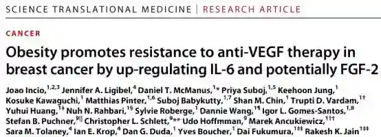 Incio说:“这是第一项研究提出体重指数等标记物可以帮助个体化抗VEGF治疗,阻断超重或肥胖癌症患者的IL-6或FGF-2等分子。 确定和验证治疗反应的预测性生物标志物,并获得将患者分类为目前可用的抗血管生成疗法中哪一种疗法最有益的能力仍然是肿瘤学的主要优先事项。”他还指出,他们关于IL-6和FGF-2阻断剂对肥胖相关抗VEGF抗性的影响的结果可能很快就会临床测试,因为这些途径的几种抑制剂是可用的。他们用来抑制FGF-2的药物之一是二甲双胍,,也可以抑制某些癌症的生长。
