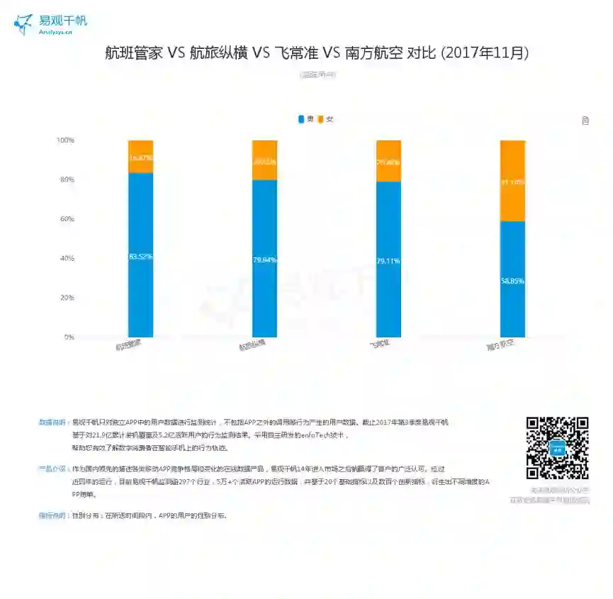 2017年11月航班管家、航旅纵横、飞常准及南方航空用户属性分析