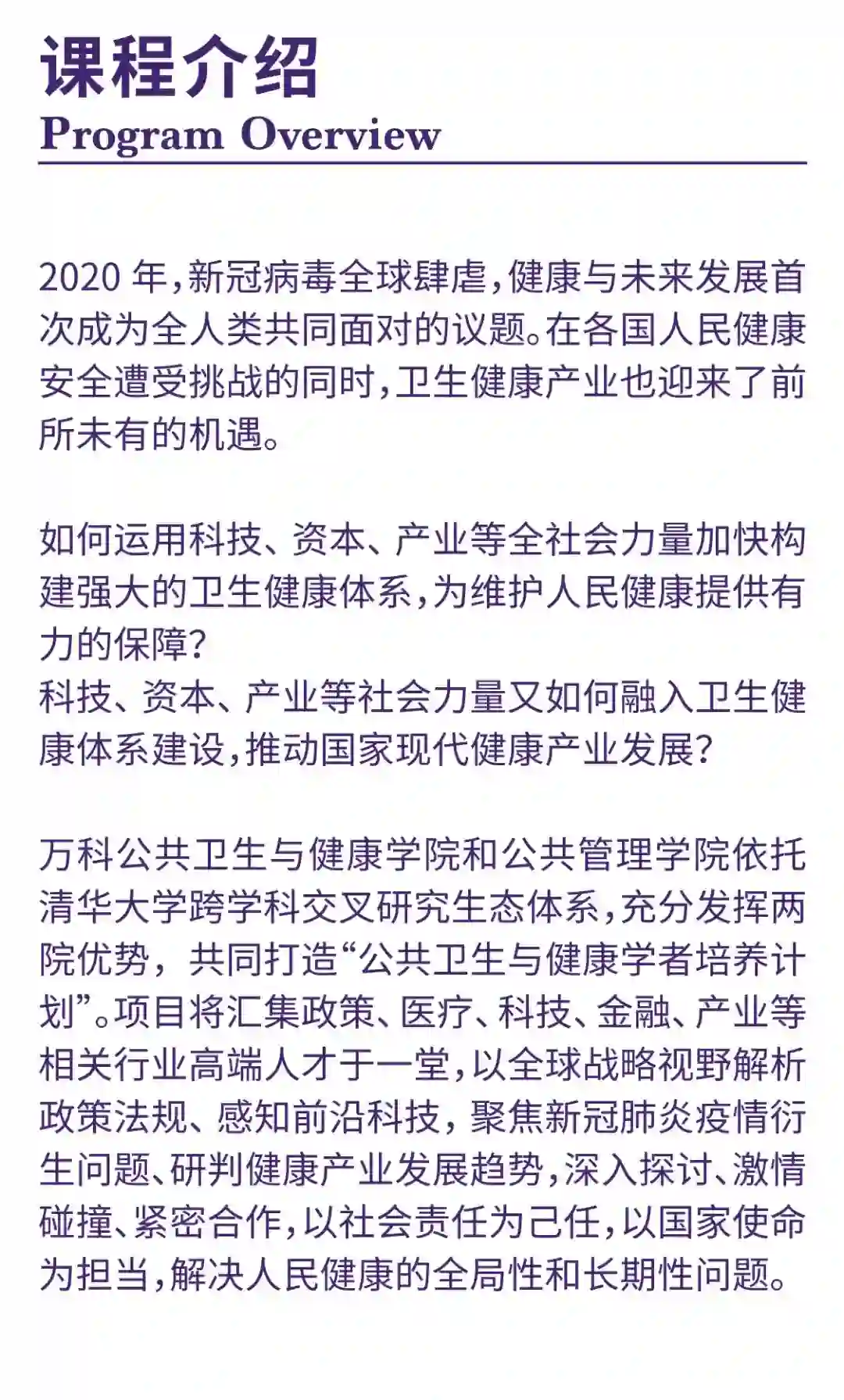 本文介绍了清华大学公共卫生与健康学者培养计划,欢迎扫码,踊跃报名。