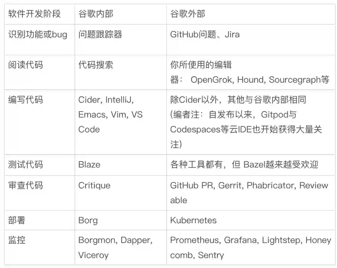 为了提高生产力,最好能在各个步骤中找到更好的工具。这里向大家推荐一个实用的 GitHub repo,能够识别谷歌内部几乎每款工具所对应的最相似外部工具:https://github.com/jhuangtw/xg2xg。
