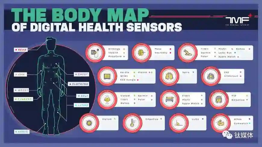 数字健康传感器身体图,图片来自The medical futurist