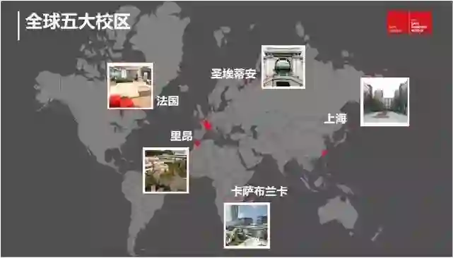 法国里昂商学院已实现全球布局,在欧洲的巴黎、里昂、圣埃蒂安、亚洲的上海、非州的卡萨布兰卡均设立了校区