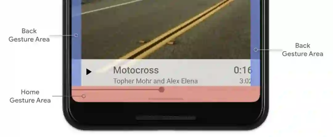 不幸的是, 进度条太靠近主屏手势区域 (Home Screen Gesture Area),所以当用户在该区域滑动时,系统把它错误地判断为用户是要执行快速切换应用的操作,这也会让用户感到困惑。支持手势导航的任何屏幕边缘区域都可能发生类似情况。有很多可能导致冲突的例子,例如: 导航抽屉 (DrawerLayout)、多图展示 (ViewPager)、进度条 (SeekBar),甚至在列表上进行滑动操作也有可能出现冲突。