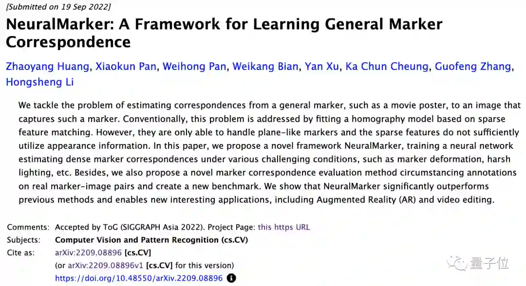为了达到丝滑逼真的视觉效果,研究者们提出了一个新框架NeuralMarker,来捕捉标志物到参考图像的密集对应关系。