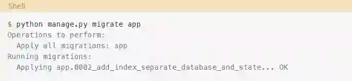 模型与数据库状态的分离是一个重要的概念。一旦你理解了它,以及知道如何使用它,你就可以突破内置迁移操作的许多限制。我想到的一些用例包括添加已经在数据库中创建的索引,以及为DDL命令提供特定的服务商参数。