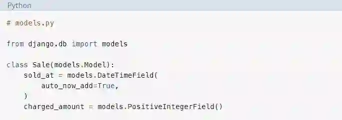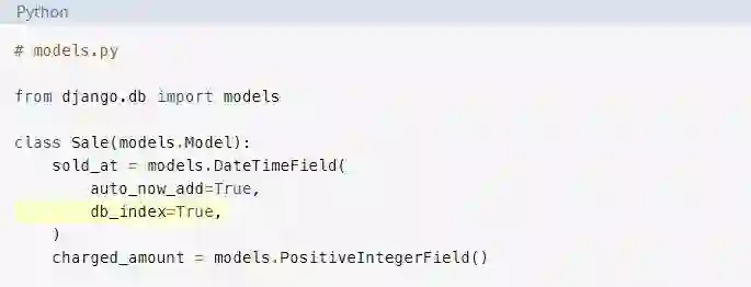 你将在一个名为app的应用中使用一个虚构的Sale模型。在现实生活中,Sale等模型是数据库中的主要表,它们通常会非常大,并存储大量数据: