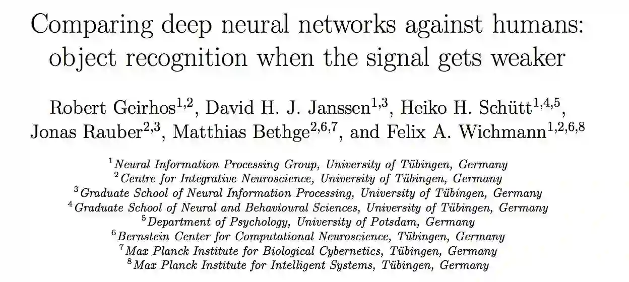 近日,来自德国 Tubingen大学和Potsdam大学的研究人员们共同发布了一项研究成果——深度神经网络和人类视觉在信号变弱时进行物体识别的差异对比。这些专家分别来自神经信息处理、综合神经学、心理学与生物控制等不同领域。此项研究旨在对DNN和人类神经系统的结构和处理过程的差别作出相应解释,并且找到在信号变弱时两种视觉系统的分类错误模式的不同。