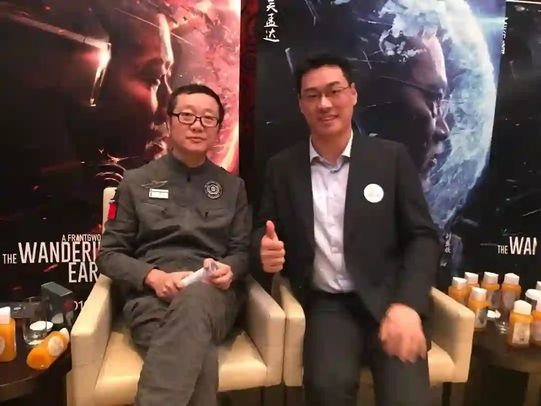 《流浪地球》作者刘欣慈与满记甜品CEO潘冠鹤合影