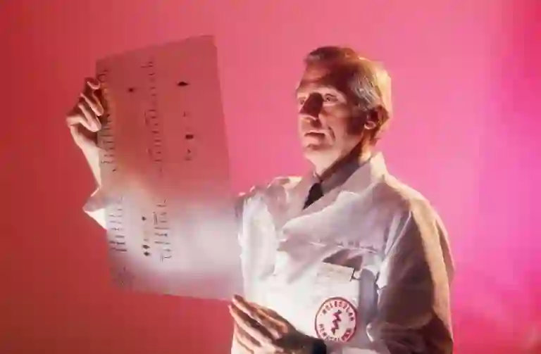 安德森正在观察一份DNA测序凝胶图谱。图片来源:RICHARD T. NOWITZ/SCIENCE SOURCE