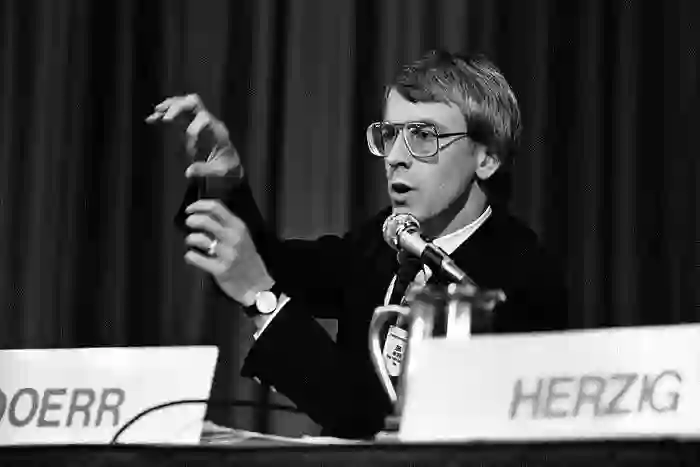 凯鹏华盈的约翰·多尔在1984年2月5日至8日于亚利桑那州菲尼克斯举行的个人电脑年度论坛上发表演讲。图片来源:Ann E. Yow-Dyson—Getty Images