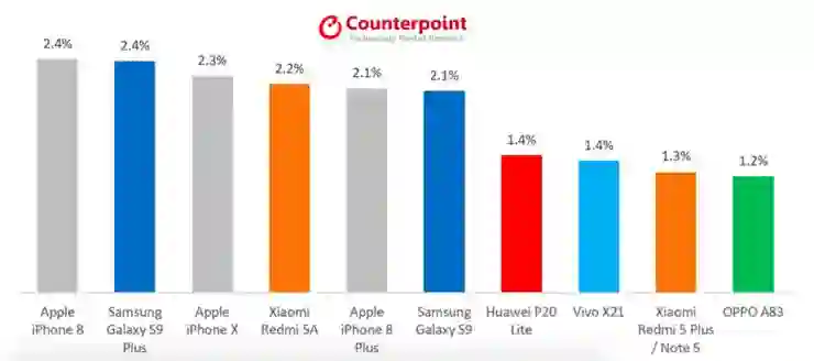 Counterpoint 数据显示,iPhone 8 在 5 月份全球智能手机销量中占 2.4%,首次成为全球最畅销智能手机。研究人员表示:“在世界杯之前,强有力的促销帮助这家科技巨头在欧洲和其他市场引发了买家的兴趣。”