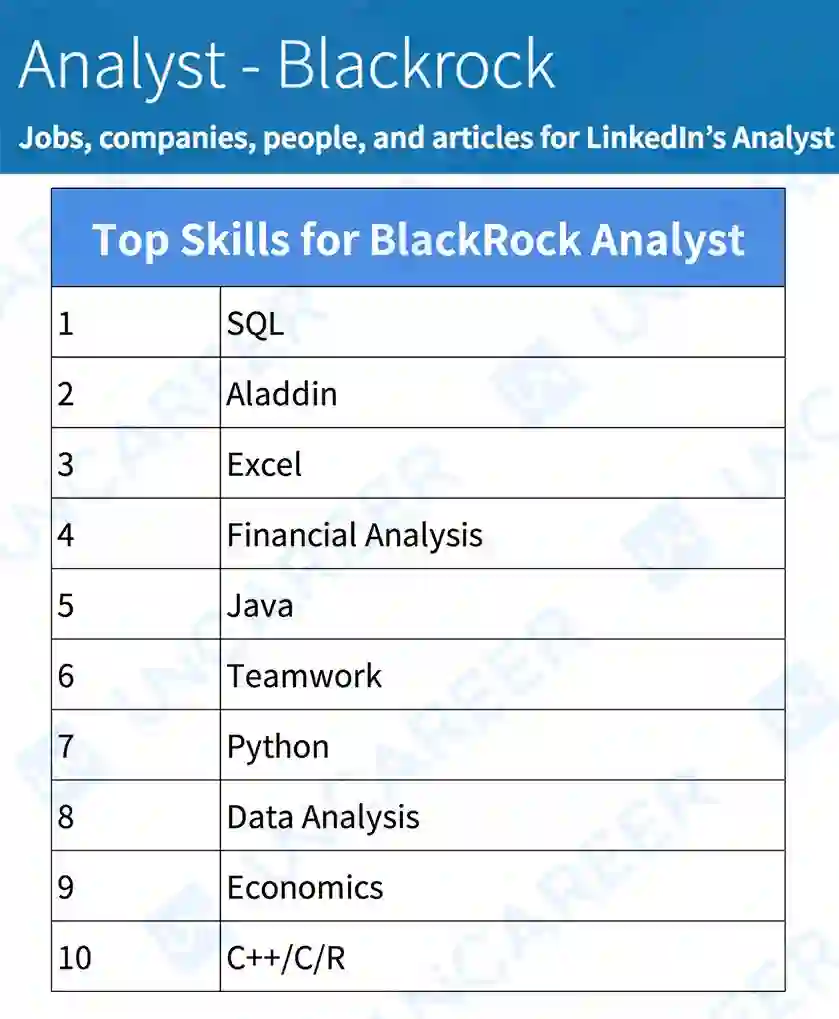LinkedIn分析了7853位领英上的BlackRock入门级分析师的简历和资料,总结出了买方资管名企Analyst的必备技能: