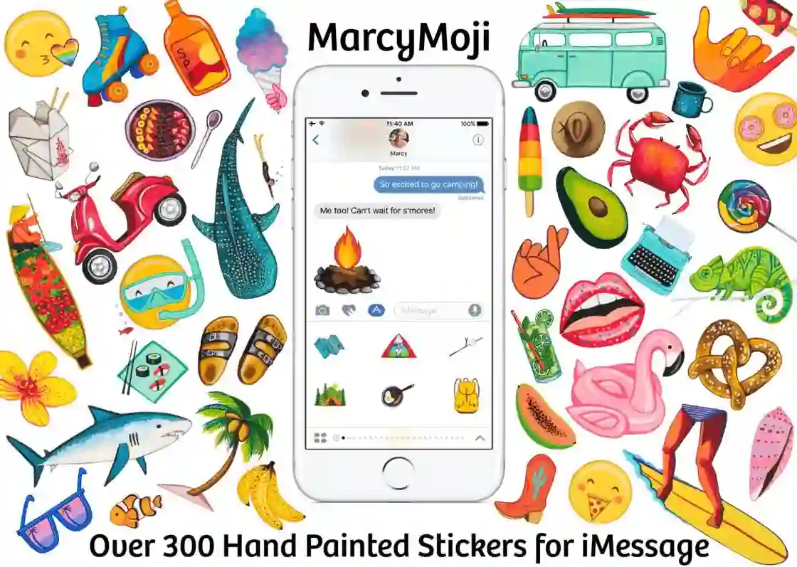 你可以免费下载 MarcyMoji,并且使用其中一小部分贴纸,在此基础上内购额外的贴纸,目前已收录 500+ 贴纸。