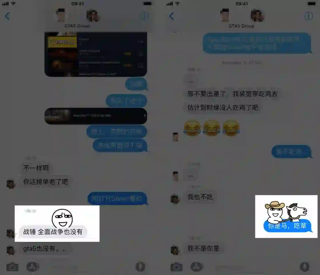 这个特性让表情包的使用可以更加地有创意,比如在对方发来的自拍上「贴」个小丑鼻子、一撮卓别林胡子或是一坨褐色的懒羊羊发型,都可以让图片文字信息增色不少,使聊天更加有趣。