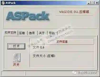首先,用ASPack给程序加个壳,打开ASPack加壳工具,如图1所示。
