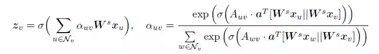 结构性自注意力层通过计算注意力权重作为其输入节点嵌入的函数,从而加入节点v相近的邻居。