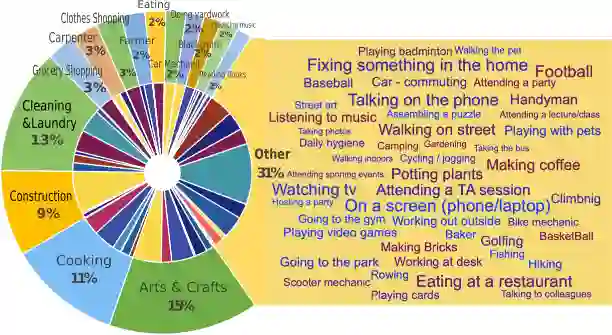 Ego4D数据集的地理覆盖面、场景、参与者和捕获模式都各不相同。数据也是使用多种不同的现成头戴式摄像机捕获的,如GoPro、Vuzix Blade等等。