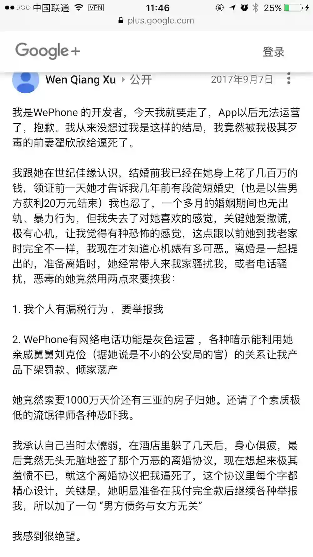 鉴于逝者的遗书等重要证据保留在Google+,我们尚不知道是否有书面文件,如果没有,调查和取证将遇到一些麻烦。我们呼吁谷歌中国公司关注此事,并在必要时给予逝者家人和警方必要的协助。