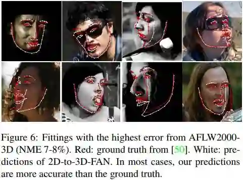 5. 我们的研究结果显示,2D和3D人脸对齐网络都实现了非常高准确度的性能,这可能是接近了所使用的数据集的饱和性能。