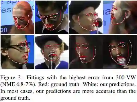 作者表示,按照这个路径,“我们的主要贡献是构建和训练这样一个强大的人脸对齐网络,并首次调查在所有现有的2D人脸对齐数据集和新引入的大型3D数据集上距离达到接近饱和性能(saturating performance)有多远”。