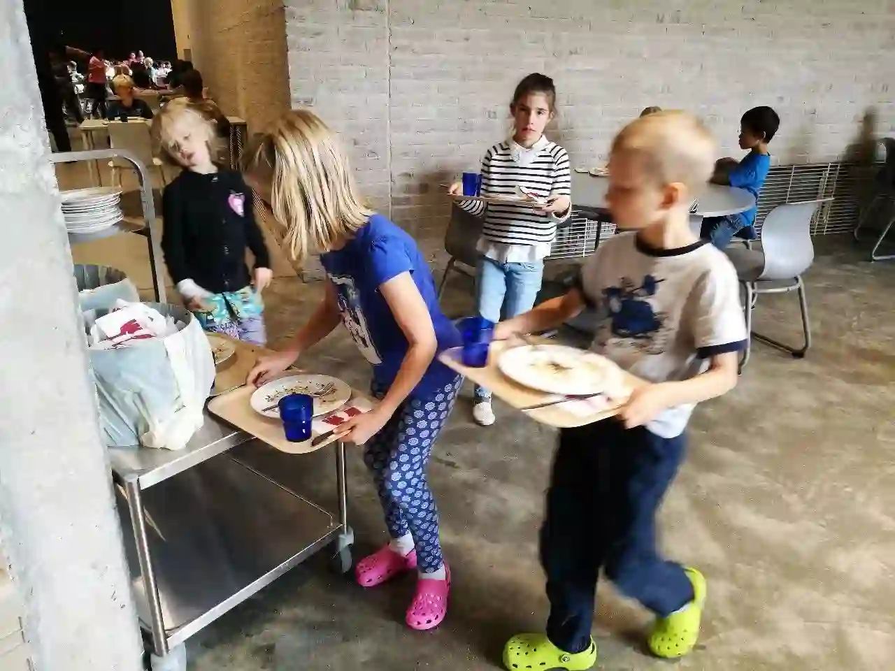 ▲芬兰的孩子们从小学开始就要自己清理食物餐具,绝不会在盘内剩下多余的食物