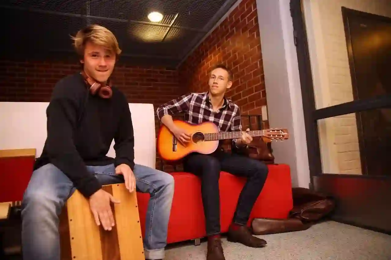 ▲课间,角落里的一把吉他与木桶,学生们沉浸在自己的音乐世界里