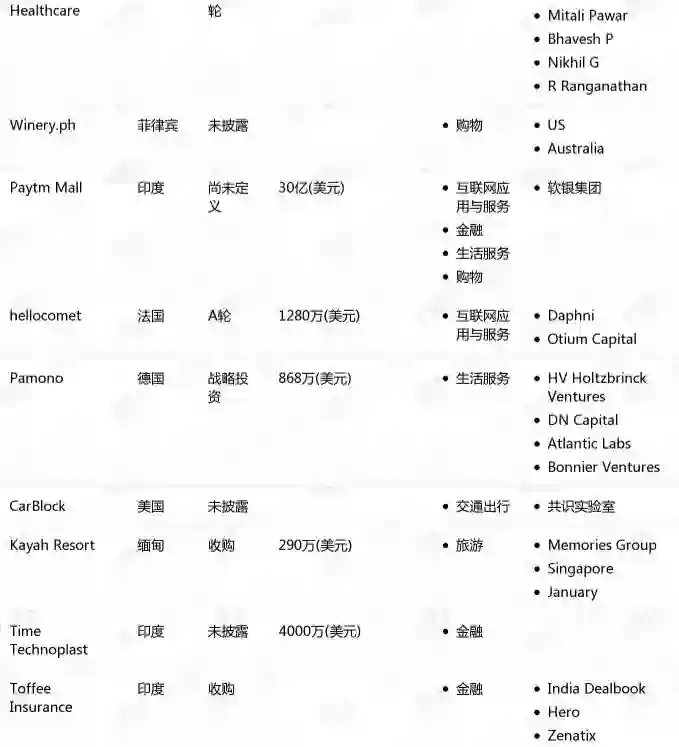 据钛媒体Pro分析,从地区分布上看,印度是投融资交易最多的国家,有 8 起,总额约33.13亿美元,第二第三名分别是日本(2 起,约12.2亿美元)和英国(4 起,约9.31亿美元)。