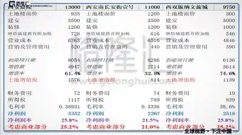 下面介绍一下几个高利润项目:西安宸院25.8%、西安南长@安J壹号21.5%;融创从2015年进入西安,至今2017年11月销售额超过08年便进入西安的万科拿下行业之首同时,十几个项目平均利润率在18%+。此外西双版纳这个文旅城利润也极高,为25.2%。笔者详细研究融创过土地项目,发现总计300多个项目,高盈利水平项目有100多个以上,而可能微利或亏损项目只有10来个。