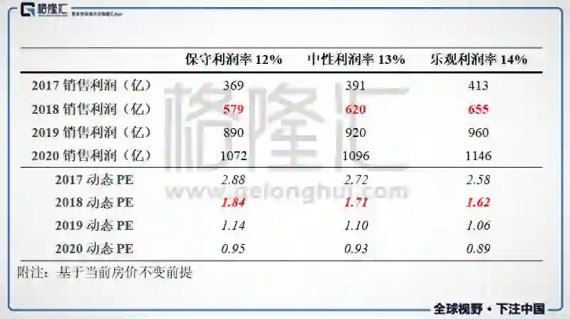 同样将利润率分别为保守、中性、乐观三种情况下计算融创动态估值如下表所示: