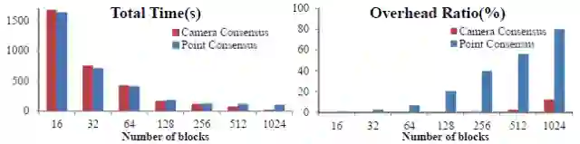 首先,作者基于全局相机一致性,从经典优化算法——交替方向乘子算法(Alternating Direction Method of Multipliers, ADMM)中推导得到分布式方法的计算公式。其次,作者分析了在这种条件下上述分布式优化方法的收敛性,并确保该方法能够收敛。此外,作者特别采用过松弛和自适应方案来提高其收敛速度。然后,为了减少分布式计算的通信开销,作者提出对大规模的相机点可视图进行分割的方案。