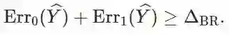 如果基于可以确定 A=Y 或 A=1-Y,那么 将取到其最大值 1。在这种情况下,任何公平分类器都必然会在至少一个群体上产生至少为 0.5 的误差。
