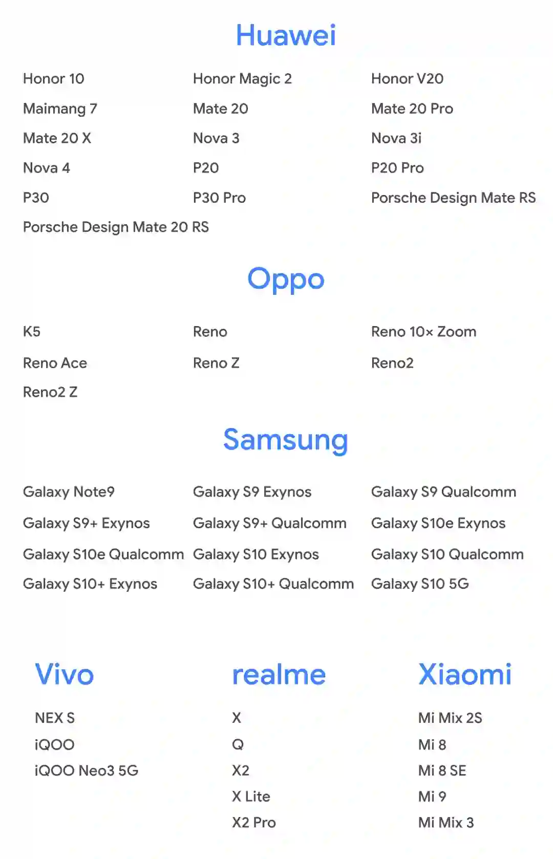 支持设备列表