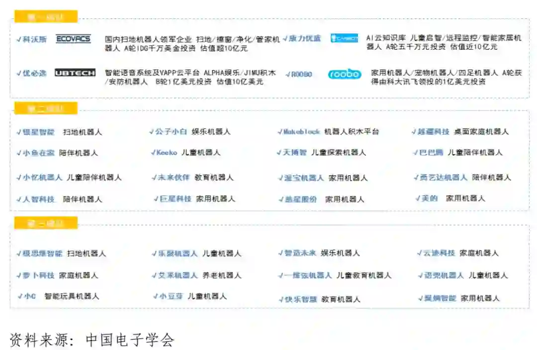 从今天科沃斯上市来说,可以分为几个小点:1、最快成熟的三个细分品类。一个是清洁机器人,像科沃斯,在中国不仅仅是科沃斯,像小米,像很多家电企业都在做扫地清洁机器人。而且从家用清洁机器人,未来还有一个领域是偏商用的和大型工业用的清洁机器人,这一块在中国是比较有优势的,也比较成熟。还有两个品类就是平衡车和无人机,我们叫飞行机器人。飞行机器人我们知道中国有一个巨头就是大疆。而且大疆未来除了将相关的智能技术用于无人机以外,他们还应该会在机器人方面有很多投入。2、特定场景和空间的短途物流机器人。举几个例子,比如像目前发展非常快的仓储物流机器人,从国外的亚马逊开始,到中国现在大多数的电商、物流和仓储企业都在采用,而且越来越多的采用国产仓储物流机器人,这是一个应用场景。另外一个应用场景就是酒店物流机器人,我们跟踪了一家中国的酒店服务机器人公司,从第一家酒店做到今年全国有300多家酒店在用酒店物流机器人,现在应该说是应用场景全球第一。还有中国公司在做基于医院的物流机器人,除了移动能力以外,他们根据医院的场景和业务逻辑做了定制整合。所以在特定场景和空间的短途物流机器人,我们认为未来的发展空间非常大。