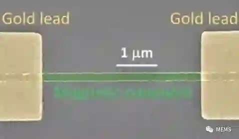 扫描电子显微镜图像显示了一种磁纳米线装置,用于测量电流感应扭矩