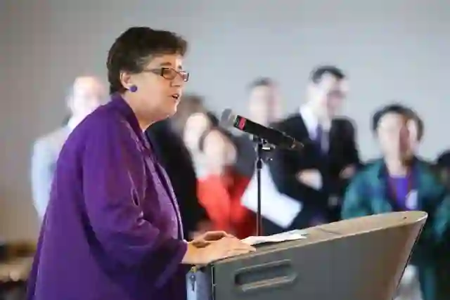 华盛顿大学校长安娜·玛丽·科斯致辞。华盛顿大学 供图