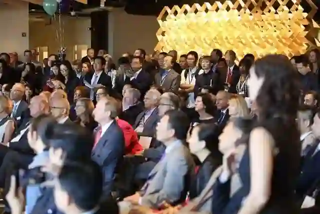 清华大学校长邱勇,华盛顿大学校长安娜·玛丽·科斯(Ana Mari Cauce),中国驻旧金山总领事罗林泉,华盛顿州州长杰伊·英斯利(Jay Inslee),华盛顿州前州长、前美国驻华大使骆家辉(Gary Locke),华盛顿州前州长克里斯汀·葛瑞格尔(Christine Gregoire),微软公司前任首席执行官史蒂文·鲍尔默(Steven Ballmer),微软首席执行官萨蒂亚·纳德拉(Satya Nadella),微软总裁布拉德·史密斯(Brad Smith),以及来自高校、政府、企业等约200位嘉宾和全球创新学院的44名同学,共同见证了这个激动人心的时刻。华盛顿大学副校长韦克瑞姆·詹德雅拉(Vikram Jandhyala)和清华大学副校长杨斌共同主持仪式。