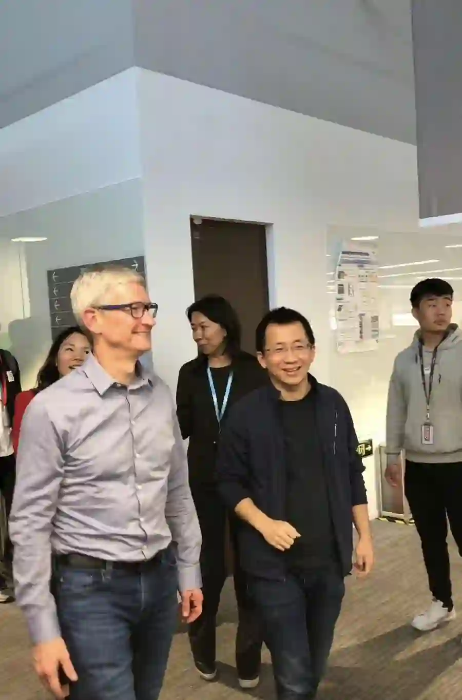据报道,今日头条创始人张一鸣,亲自为库克当“导游”。两人还和抖音达人们,录制了抖音短视频。