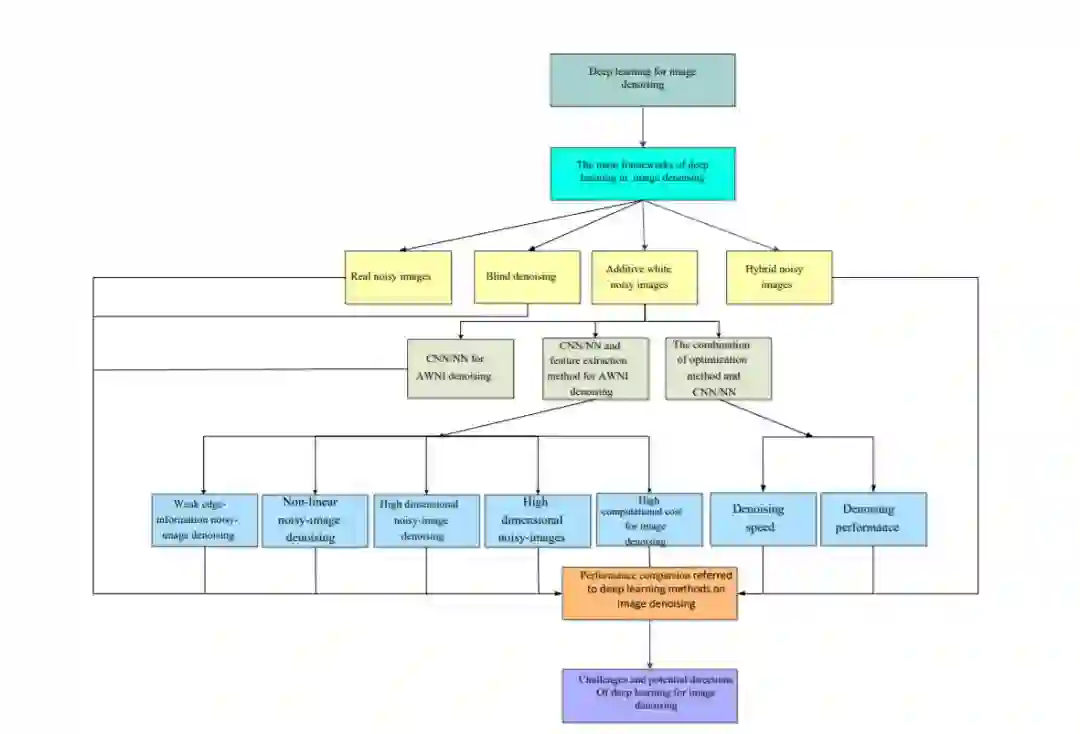 深度学习技术在图像降噪方面获得了极大的关注。但是,处理噪声的不同类型的学习方法有很大的差异。具体来说,基于深度学习的判别式学习可以很好地解决高斯噪声。基于深度学习的优化模型方法对真实噪声的估计有很好的效果。迄今为止,很少有相关研究来总结用于图像去噪的不同深度学习技术。在本文中,作者对图像去噪中不同深度技术进行了比较研究。我们首先对(1)用于加白噪声图像的深卷积神经网络(CNN),(2)用于真实噪声图像的深CNN,(3)用于盲目去噪的深CNN和(4)用于混合噪声图像的深CNN进行分类,这是噪声,模糊和低分辨率图像的组合。然后,又分析了不同类型的深度学习方法的动机和原理。接下来,将在定量和定性分析方面比较和验证公共去噪数据集的最新方法。最后,论文指出了一些潜在的挑战和未来研究的方向。