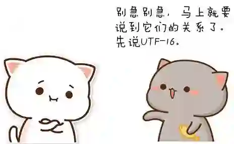 UTF-16 要常见得多,它的码元是 16 位的,也就是说每 16 位去读一下码点,获取码点的前 16 位数字,直到读取完成。