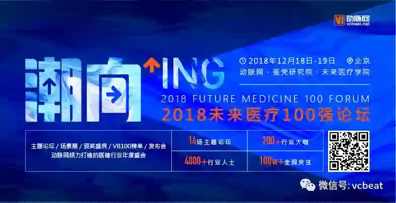 “2018未来医疗100强论坛”是动脉网打造的属于医健领域创新者的年度盛会。本论坛将以未来医疗100强榜单&奖项的发布为契机,举办14场主题论坛,邀请近200位行业大咖,聚集国内外最为活跃的医疗健康创新企业、上市公司、金融机构、医疗机构等产业核心力量,促进产业链有效互动合作,推动创新健康医疗产业的变革进程。长按识别图中二维码,即可报名!