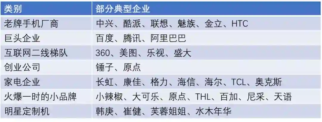 2011年前后,很多创业公司如锤子科技和原点手机也加入了智能手机的热潮,但他们或缺钱或缺乏供应链管理经验、或没有稳定的团队,最终走向了关闭/卖身之路