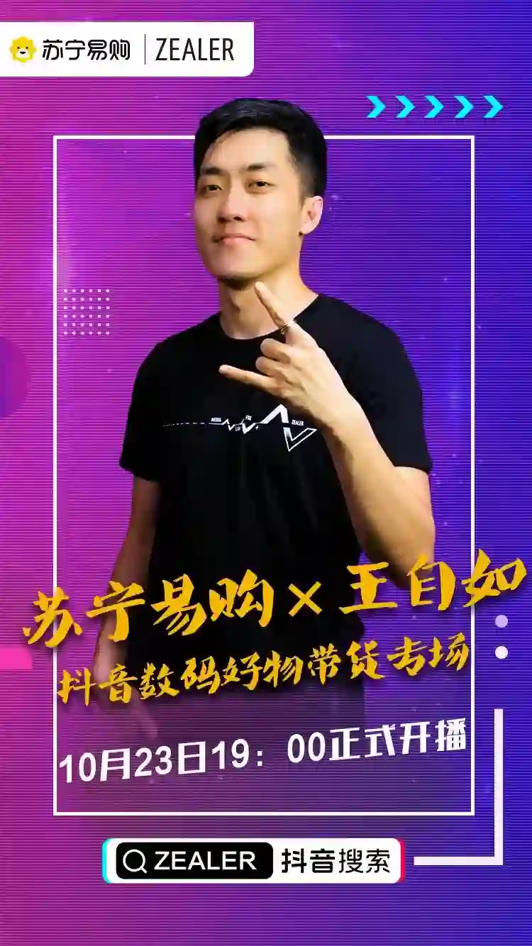 本场直播是自如抖音首次直播带货,也是苏宁易购×王自如 抖音数码好物带货专场,我们为大家准备了超多数码好物。除了众多旗舰产品以及智能数码产品,还有明天开售的新品iPhone12,只要你来看,总有你中意的产品!10月23日19:00锁定 抖音 ZEALER 直播间! 我们不见不散!