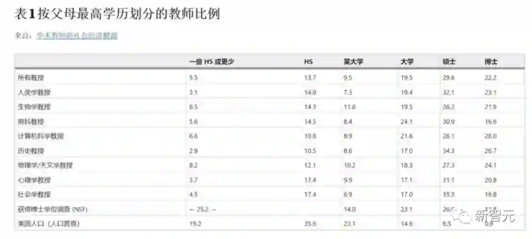研究显示,美国高校教师往往来自受过高等教育的家庭。
