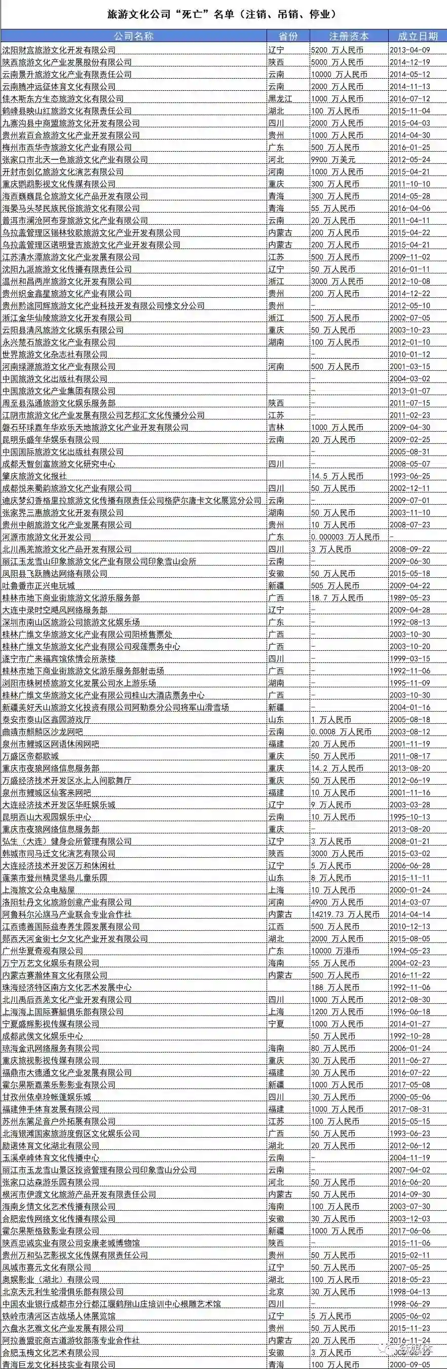 钛媒体在企业征信信息平台启信宝查询发现,据不完全统计,在旅游行业中涉及旅游文化、演艺相关业务的企业中,已经先后有110家左右的企业的营业状态为注销、吊销、停业状态。