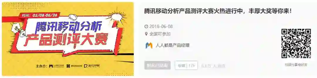 5月8日,我们在人人都是产品经理社区网站发布了文章《腾讯移动分析产品测评大赛报名开启|丰厚大奖等你来!》,紧接着就激起了不少小伙伴们要参赛的兴趣: