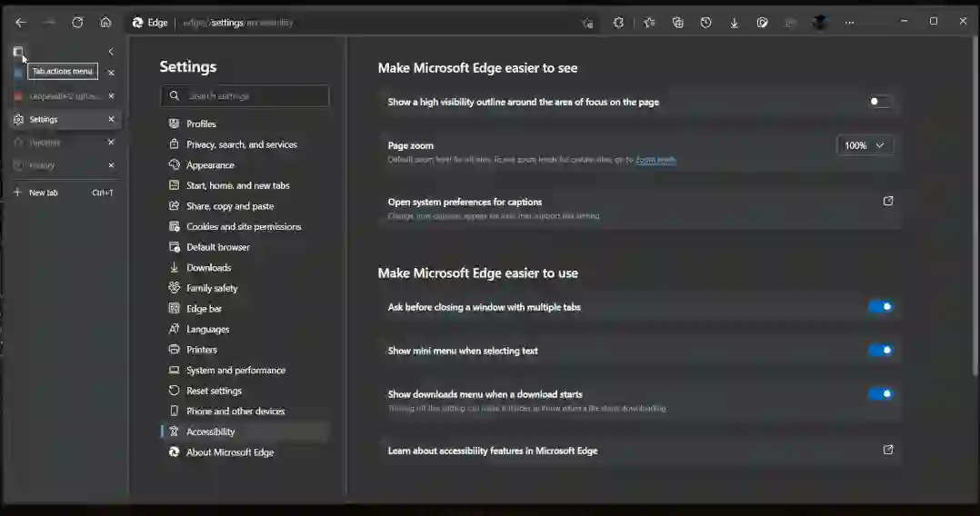 微软 Edge 浏览器新增支持标签搜索功能