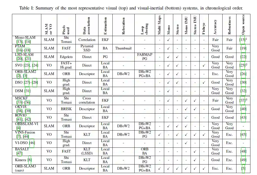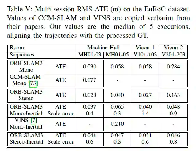 与只使用最后几秒信息的视觉里程计系统相比,ORB_SLAM3是第一个能够在所有算法阶段重用所有先验信息的系统.这允许包含BA调整共视关键帧,这些关键帧提供了高视差观测,提高了精度.