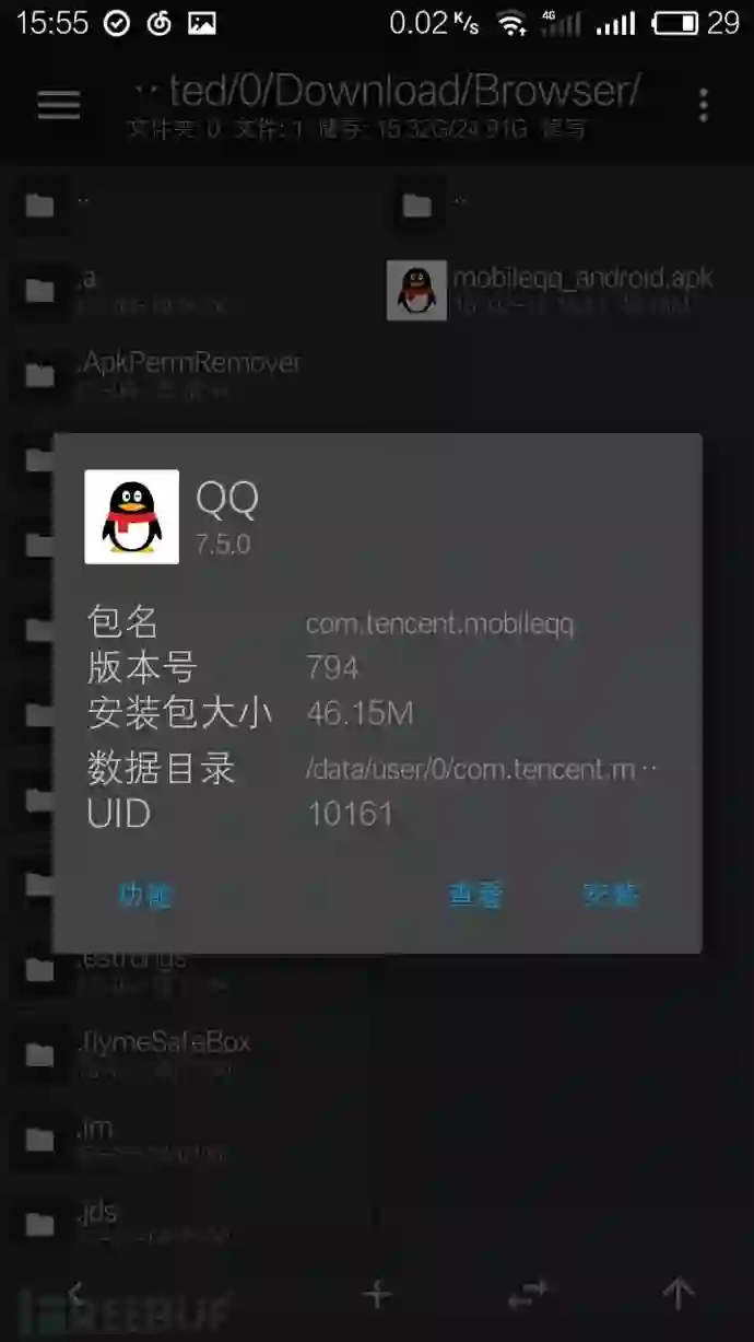 QQ移动客户端的安装包,文章中的安装包的版本号为7.5.0.3430 (https://im.qq.com/mobileqq/)