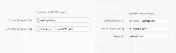 当然,这是今年 5 月谷歌早就透露的新版 Chrome 的重要功能。当时,它还宣布,从 Chrome 69 开始(今年 9 月发布),如果网页缺乏安全防护,HTTP/HTTPS 页面上就只会显示“不安全”的标记了,而 HTTPS 网页上的“安全”标记则会被移除。