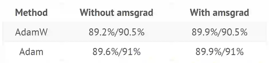 关于 AMSGrad 是一个糟糕的「解决方案」的建议是正确的。我们一直发现,AMSGrad 在准确率(或其他相关指标)上没有获得比普通 Adam / AdamW 更高的增益。